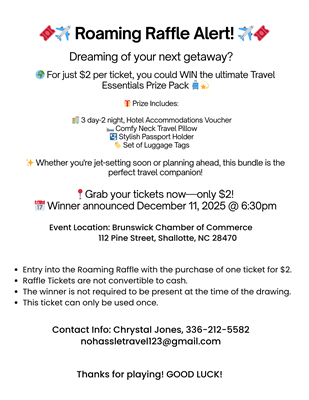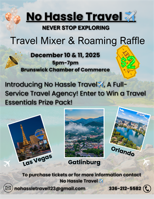 #NoHassleTravel #TravelMixer #RoamingRaffle #TravelGiveaway #TravelEssentials #ExploreWithEase #TravelAdvisor #ChamberEvent #NeverStopExploring